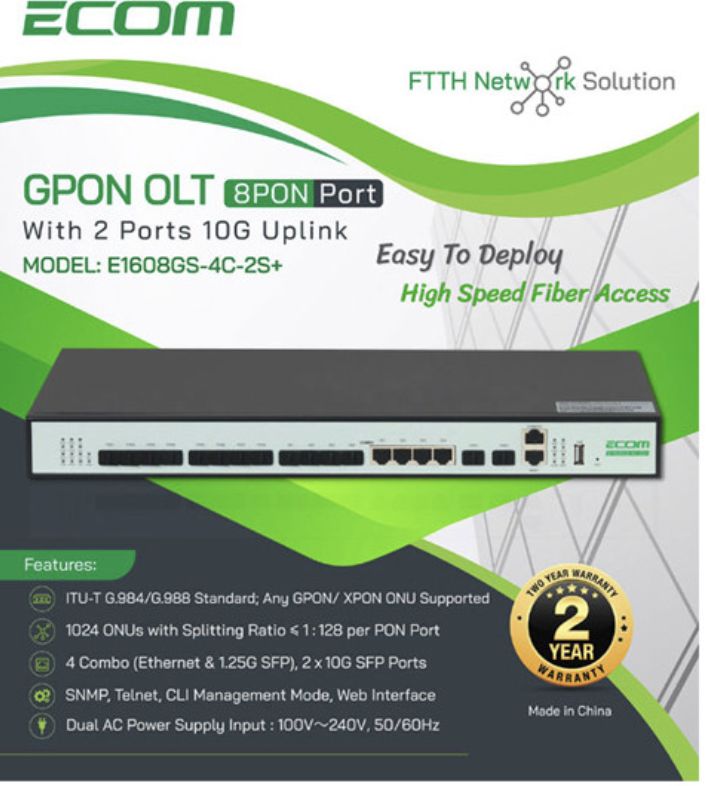 ECOM 8 Port GPON OLT with 4*10G Uplinks